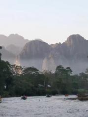 在老挝万荣乘小船游南松河,好好玩哟,景色优美,风景宜人,风光无 限好,有特色的景点之一,值得推荐给大家,趣味性强,感觉愉悦。