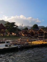 很多人去万荣就是冲着南松河。租一个轮胎往河里一扔,趴上去顺水而走,几公里后再上岸。也有正儿八经的小艇漂流,据说能连着飘3个小时。可惜,我依然没法下水,错过了琅勃拉邦的瀑布也错过了南松河。 平生第一次坐热气球,一个人只花80美金,不过便宜无好货,热气球只飘半小时,在半空中俯瞰的万荣小村镇也并无美丽风景。特意选了日落时分,算是此行最后一次看sun set。万荣,再见。