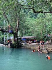 万荣城又小又破,就是南松河漂流和丛林铁索,溶洞探险就一点点长,漂流主要就是划船,河流很平缓,基本没有落差。丛林飞跃,每一段都很短,高度也不大,基本没多少刺激