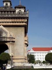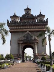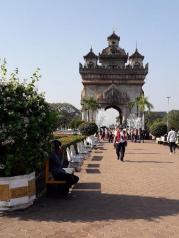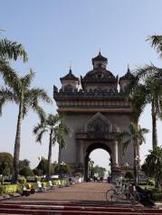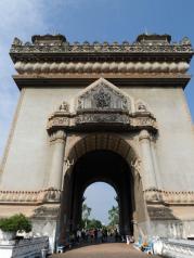 老挝万象的凯旋门坐落在市区正中心。远看外型与法国的凯旋门有些类似,也是连接着万象最繁华的大街,但是规模小很多,近看会发现与法国的凯旋门大相径庭,老挝凯旋门上面都是雕刻有佛像及神话故事中的人物等,纪念老挝人民解放独立。