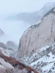 冬天去华山必须坐缆车上去吧,路太滑了,缆车很安全,一眼望下去风景很美