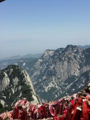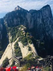 从西安坐半小时高铁到华山北,车站边上有很多小店,吃了早饭,坐上1号专线到华山游客中心。领了网上买的2个成人全套票,2个不含门票的索道和车票(事实证明,如果是老人和小孩是可以分别享受9折和8折优惠的),选择了从西峰上,北峰下。西峰索道旁的滑道可以节省些上山的力气,但还是有很多楼梯台阶要爬。西峰索道很惊险刺激,风景也很美丽。从西峰到北峰前半小时路程很平缓,从金锁关开始就比较陡了,北峰索道就只是发挥下山功能了。再坐车回到游客中心,不再等免费车,直接打的到华山北火车站15元。还算一路顺利!