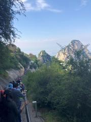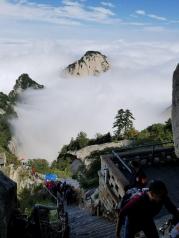 华山之行,累,却是无比开心。不是自己一路登山上去的(玩了几天,体力不支,体能好的伙伴建议还是可以选择登山。从北峰上去,4个小时左右)不过能亲自穿梭于高峰的山间小道和攀爬陡峭的阶梯,站在最高点眺望整个古都和俯瞰山下,体验刺激的“高瞻远瞩”之势,当真是快哉!在最高的南峰和以地势险而出名的北峰都没能体会到腾云驾雾的感觉,也没有看到山中云海,估计是时间点不对的缘故。建议大家尽量不要跟团,因为接人和带你去吃饭等,会消耗掉很多时间。