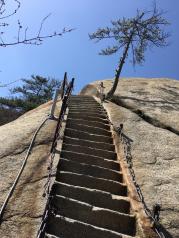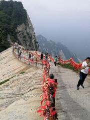 很庆幸爬华山那天人不是很多,八点已经坐索道到了北峰,用了四个小时走遍西南东中四座顶峰。山上晒、风大,做好准备。一定要戴手套,下山容易很多,西峰最难爬,都是台阶,可景色最好。