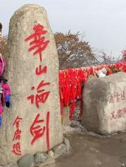 华山位于陕西省,里西安市两个小时的大巴距离,是五岳之一,也是五岳中高度最高的,它的险居五岳之首,有五个峰——西峰、南峰、东峰、中峰和北峰。游华山有三条常用的线路——西上西下,北上北下和西上北下。西上北下是最经典的路线。西上西下有索道上去,单程140元,往返280元,北上北下单程索道80元,往返150元。最高峰是南峰,高度达到两千一百多米,我2018年11月17日游的华山,当西安市里还是绿树成荫时,华山顶上已是白雪皑皑了。门票淡季140元,旺季160元,有些贵哈!