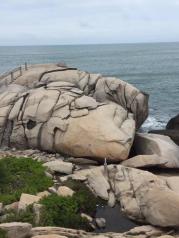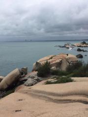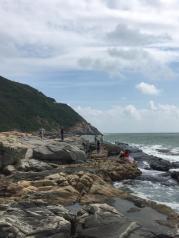 石头公园景色很美,现在也有二路公交车可以坐到石头公园了,游1是从火车站到石头公园,游2是椰子大观园绕高隆湾一圈到石头公园,目前还是免费不收门票。沿着石头公园还可以到右边的一个湾,好像那里有酒店,椰树下有大姐卖郁子,很热情地招呼游客。