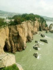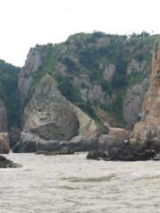 半屏山以泛舟环岛观光最好,因多数景点分布于岛东侧的强海蚀岸带,从海上仰观气象维肖,势尤奇险。