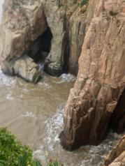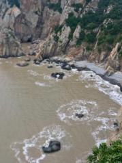半屏山景区在温州洞头的半屏岛上,据说也是今年下半年才开始收门票的。 门票也不贵,30元。 景区有两个出入口:一个是正门那边,景区停车场附近;另一个在海上游半屏山的码头那里,要沿着海岸边的长廊走过去,有个小入口。 我们是从码头那边进去的,进去后就是一个小小的娘娘庙。 然后穿过长长的山洞,这个真是鬼斧神工! 就到了海边。海的对面是东岙渔村和红石滩。 继续往上爬,有好几处观景台,移步换景,往东往西都可以看到大海,不一样角度,不一样的美景。 山顶上还有个广场,有些龙生九子的文化宣传。 但最精华的还是黑石滩。朝南爬,一直到快没有路的地方,有条很陡峭的山路通往黑石滩。 从顶上下到黑石滩差不多百来米落差。下