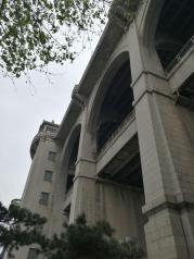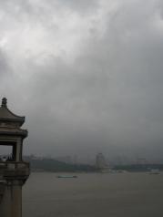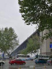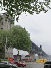 武汉长江大桥是在万里长江上修建的第一座大桥,因而被称为“万里长江第一桥”,也是武汉市的标志性建筑。到达武汉当天的上午,天气晴朗,出租司机师傅都说难得这么清透的好天气。没想到傍晚上桥没多久,雷电交加、暴雨滂沱,游人躲进桥头堡避雨,欣赏这难得的雨中即景。