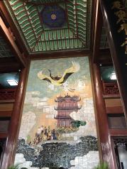 黄鹤楼正面,外观还是很好看的,拍照也非常漂亮,整个楼都是重建的,在三楼看比在五楼看的长江景色要好。从东门过去就有人拿着喇叭在喊,说离黄鹤楼很远,让你坐十块钱的电瓶车过去,其实没有必要,坐了才发现,其实走路也不远,除非老人,没必要坐。