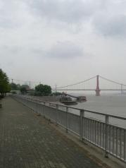 从户部巷反人流方向出来,就可见武汉长江大桥。附近有武警兵营驻扎。不远处红色的是长江二桥。江边开阔,有渡轮。大桥二层,上面走汽车下层走火车。看这些历史旧建筑物,都有点岁月静好的感觉。