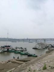 在武汉长江大桥看这些历史旧建筑物,都有点岁月静好的感觉。从户部巷反人流方向出来,就可见武汉长江大桥。附近有武警兵营驻扎。不远处红色的是长江二桥。江边开阔,有渡轮。大桥二层,上面走汽车下层走火车。
