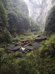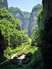 天坑地缝国家地质公园位于重庆市武隆县,著名的电影“黄金甲”就选择在天坑地缝内,几栋古建筑陈列在地,沧桑满目,周围绝壁耸立,水流潺潺,自然景观浑然天成,留在建筑内的展示,也表达了好山好水好风光。
