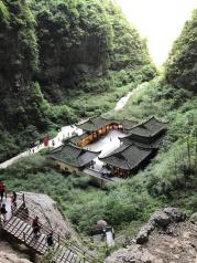 三段石桥和一处驿馆建筑成就了天坑地缝国家地质公园这片景区,也为电影拍摄提供了一处幽静神秘之境。进入天坑要自山顶步行盘旋而下,坑底的游览也全是步行,只有每人次300元的人工抬杆可代步,所以体力不济而又时间有限者要量力而行。
