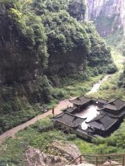 我以为天福官驿有种身居山中,道骨仙风的感觉!虽然此驿站为后期复建,但我到武隆至少有一半原因是张艺谋拍摄“满城尽带黄金甲”影片宣传效应促成我到此一游。 天福官驿占据天坑位置极佳,只是里面现在的现代气息有点浓