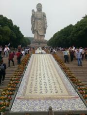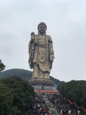 灵山大佛 背靠青山 香火鼎盛 离无锡市区比较远 打车走高速要160块 门票可以提前定双人票 有优惠 直接刷身份证入园 很方便 景区特别大 有电瓶车可以坐 正点有九龙灌浴 里面可以摸佛手 抱佛脚 旁边的梵宫也是金碧辉煌 景区里的蔬食馆很推荐 65元可以吃自助 性价比超高