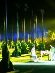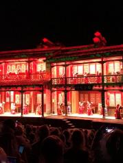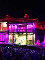 武夷山的《印象大红袍》,票价168,二月份来观看,实在是精彩,还是值回票价。带孩子来看看是很不错的选择,夏天来较好,真实山水舞台,2月份演出在大王峰下溪岸边,晚上有点冷。360度旋转观众席加震撼的灯光舞美音响是很酷炫,但张艺谋继续发扬不会讲故事只会摆造型的优良作风,对文化艺术略有追求者就睁一只眼闭一只眼吧!至少孩子记住了“大红袍”名字的由来,很有教育意义的!不过最后一堆肚兜美女给观众敬茶我也是相当震惊。我们坐在前排,虽然不如后排可以看全景,但前排和演员比较接近,看得真切,而且能有幸喝到她们的敬茶。