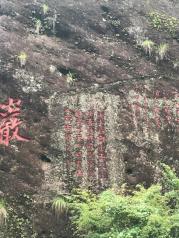 武夷山大红袍是中国名茶,来这里主要是看景区内的大红袍母树,母树生长在岩壁上,目前仅剩几株,已经不产茶了,现在武夷山的茶树都是这几株母树的插枝生长而成。 从武夷山景区的北门进,坐景区内的游览车到大红袍景点下(途径水帘洞景点),沿着一条狭长的山谷的一路走进去,清流小涧,空气清新,左面是山崖,右面是茶园,路很好走,也不远,看完大红袍母树,原路返回,或继续沿路牌走,从水帘洞出。也可以先在水帘洞景点下车,从水帘洞走到大红袍景点,再返回。