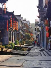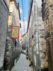 汪口位于婺源旅游东线,婺源高铁站和老北站都有到汪口的班车。从江湾到汪口大约8公里,票价6元。汪口是一个沿河而建的小村子,窄窄的街道不是很长,其最著名的古建筑是俞氏宗祠。村边的河中有竹排,感兴趣的话可以乘坐一下,好像是30元每人。河的对岸有一条已经遗弃的游览步道,步道失修,没有游人,非常幽静。在河边可以看到村民散养的鸡群,鸭子在河中戏水,一片恬静的生活。