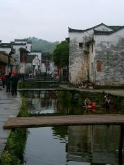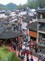李坑是古徽州乡村民居的代表,大山中的一片谷地,小河绕村而过,村民巧妙地筑坝拦水,使水流平缓下来以便用水。河上诸多的“独木桥"是当地特色。