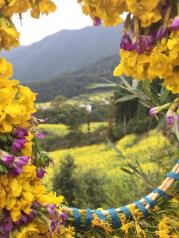 4月去江岭游玩。婺源老北站有到江岭的班车,车票20元,到老北站附近要打听一下,因为老北站根本看不出是一个车站,只是一个停车的院子,不说还真不知道是车站。江岭下车后有景区免费的换乘车,乘换乘车到景区入口,买票入内即可。通票现场买210元,携程手机上买179元,60-65岁人士现场买105元。要是时间充裕,建议买通票,住在景区附近。通票第一次进行面部识别后5天内有效,以后刷脸即可进入12个景区。3月18日到江岭,细雨绵绵,雾气环绕,宛如仙境。黄色的花、彩色的伞令人心旷神怡,清新可空气沁人心脾。景区内有滑索速降,喜欢的朋友可以一试,每人80元。如果走累了,也有免费的班车可以乘做,只是要排队。气象预报