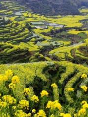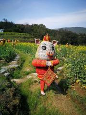 江岭景区是油菜花梯田,然后好像有滑翔伞,但是没看见人玩。江岭的油菜花梯田也是超美的,建议开车上山在下来,一边走一边玩,山腰还有很多稻草人,很可爱。