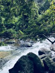 驱车前往五指山风景区,一路走走停停,不是道路陌生,而是风景太诱人。一汪泉水,一条山涧,一束流动的光影,都令我们下车拍个不停。位于水满乡的五指山热带雨林景区,空气纯净度很高,是天然大氧吧。