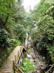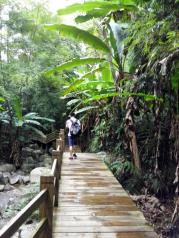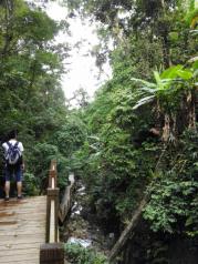 在五指山风景区坐中巴到水满乡,每30分钟一班,车程约一小时,然后转当地摩的到景区门口。进入景区后由景区的电瓶车送到观景台,但是从这个角度我怎么都没看出五个手指。热带雨林与漂流其实在同一个地方,因为季节的原因,现在没有漂流。热带雨林是走平地,非常适合体力不佳的朋友,可以轻松徒步。