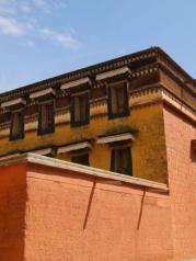 拉卜楞寺是藏传佛教格鲁派(黄教)六大宗主寺庙之一,可能是世界上最大的寺院,经堂、佛学院、僧舍相连,占地约1.7平方公里,外围的转经墙有5.7公里长。