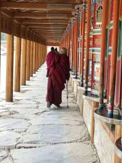 拉卜楞寺是藏传佛教格鲁派的著名寺院。是甘南地区的著名寺院。这里有2000余个转经筒。据说是世界上最长的转经长廊。转经筒已经饱经风霜,有的已经斑驳粗糙,古老而神圣的转经筒总会在信徒刚劲有力的右手的推动下,沿着顺时针不停的转下去,带来平安与圆满。