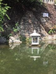 南普陀寺从大雄宝殿再往山上前行,巨石嶙峋中还有一个放生池,这个池子的面积很小。池水清澈见底,可以看见这里放生的都是小乌龟,小乌龟们自由自在地在池水中游着,或者是趴在石头上晒太阳。