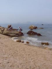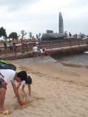 厦门环岛路值得一去,在上环岛木栈道之前,到栈道下面的沙滩玩了一会。木栈道只有前面一小段为木制的,其余都是石质的。木栈道可以看到进入胡里山炮台部分,沿途行走了两三公里,木栈道越来越窄,最窄的路段只能容下两人并排行走,一边悬空于大海之上,一边是高墙。终于走完了最窄的一段木栈道,眼前路面霍然宽广,这才发现高墙之上都是海景别墅。沿木栈道又走了20分钟,到达珍珠湾。这里依然是白沙滩,只不过没有厦大白城浴场里的沙滩白喔,不过海边的绿地公园很漂亮。