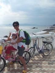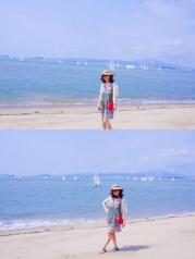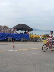 专门走了环岛路,其中有一段的海滩,海水天空相连,非常美丽,真不亚于澳洲和其他海滩。一路骑啊骑,游玩了曾厝安,又去了椰风寨,到了一国2制,不是自行车不灵光,肯定能到会展中心,听说那是最美丽的,马拉松的起点。