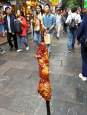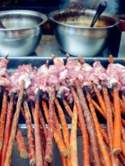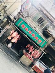 我是早上到的回民街,所以人还不是很多。店家都在准备开业的阶段,买了些山楂制品吃。然后很令我惊讶的莫过于超级无敌大块的肉了。感觉是一整头牛或一整头羊挂在那边,还有动物的肝脏卖,很震撼。