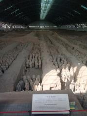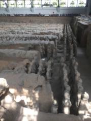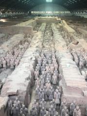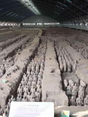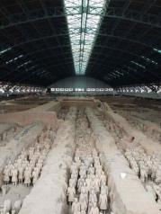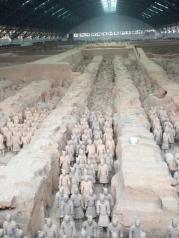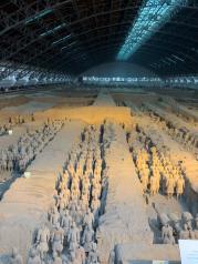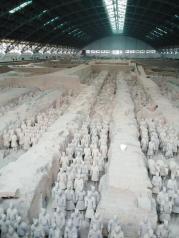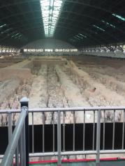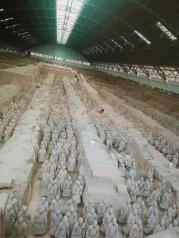 兵马俑离西安市区实在是很远呐……提前被小伙伴们预警说不要搭路边的黑车,不然就会被拉去看高仿的彩色兵马俑。结果一路提心吊胆坐正规的公交车,伴着嗑瓜子和瓜子皮到了。没有约讲解真的是一头雾水,但是看到那几个坑也是相当震撼了,鸡皮疙瘩都起来了。还有外国人真是多。