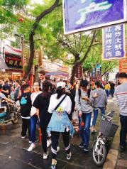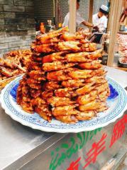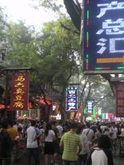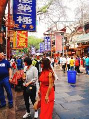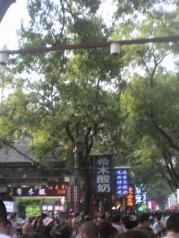 回民街——参观完鼓楼后,已经是傍晚6点半了。太阳公公还没下班,仍然炙烤着大地。可我们的肚子已饿了,于是就想到鼓楼旁边的回民街吃饭。还没到回民街,就听到小商贩的吆喝声此起彼落、一唱一和。街上,人头攒动、比肩接踵,就像进入一个人的海洋里。这时,你会不由自主地随着人浪往前走。转眼间,就会被淹没在茫茫人海之中。整条街洋溢着欢庆热闹的气氛。