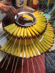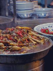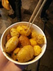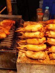 回民街一条主街道,几条支线街道,生意兴隆,游客也不少。不过感觉餐食的品种并不那么多。有很多烤鱿鱼摊位、很多烤串、很多石榴汁、很多肉夹馍、很多羊肉泡馍、很多炸土豆、很多糕点等等。