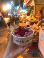 第一站,回民街美食篇。 下午养精蓄锐,休息到5,6点,感觉不那么热了才出门,结果依旧热得汗长淌!晚上去了钟鼓楼和回民街,人太多了,感觉不用自己动脚,就可以顺着人群往前流,而且回民街整体算是一个不通风的格局,一条长巷子,只要人一多,就热,再加上烧烤那些偏多,就弥漫着一股热浪。整个巷子其实东西就那些,但是胜在分店多和排队多,你会想到,这家排队太多,我再走走,去下家。吃的里面比较惊喜的是炒酸奶卷,口感丝滑柔顺,而且我一个不会喝酸奶的人竟然都觉得味道很好,但是价贵!!18块一份,很小一份,如果来都来了的话,买一份大家一起尝尝是必要的,但是人手一份的话是不明智的。