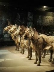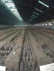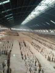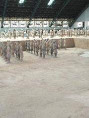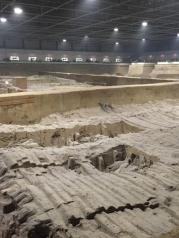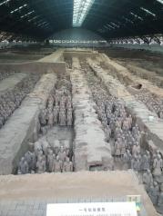 兵马俑里面有3个坑,1.2.3.号吭。1号吭最大,2.3号坑小一点。站在里面感觉古人的智慧和劳动的结晶,太伟大了。不愧是世界第8大奇迹。