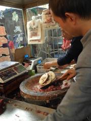 回民街很大,卖的东西大部分是石榴汁、泡馍、biangbiang面,核桃。点了一个牛肉泡馍20块,比较咸,相对来说性价比不高,因为他们家biangbiang面也要20。后来我们去的小巷吃的也就8元。回民街很热闹,到晚上10点还有很多人