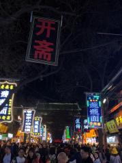 对于一个吃货来说,西安必去一定是回民街。我就是个非典型吃货,只是回民街恰好在鼓楼旁边,也就一并到此一游了。其实我是不大喜欢去这种知名的小吃街,诚然可以一次纵览遍尝当地特色美食,刻实际上这种地方的店大多是迎合游客口味的了,而且太过于商业化了,吃当地特色还得到小街巷子里面,更贴近当地人的小摊子。不过,这回民街真是热闹啊,各种面食,牛羊肉餐。吃了个羊肉泡馍,真心很一般,甚至和几年前的回民街也不大一样。