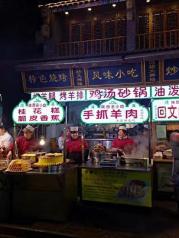 回民街环境相对差些,价格也贵,看攻略评价也不是很好,不过去看了场皮影戏还不错,20一位,讲了下价格,两人30,大概表演15分钟,一个小故事,小吃街上东西基本一样,烤羊肉串,泡馍,肉夹馍,biang biang面,石榴汁感觉也是色素勾兑,肉串吃5块肉的,比较入味