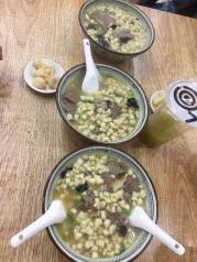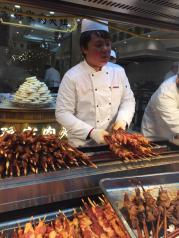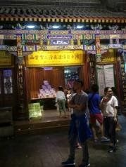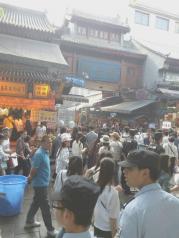 说实话,本来对回民街充满期待,中午入住酒店后立马前去回民街解决午饭问题,感觉环境不是很干净。我们在回民街吃了贾三灌汤包,随后在西*楼又点了红柳羊肉串。可是晚上我们肚子都拉稀了。我们分析是西*楼烤串的问题,因为师傅是把已经烤过的肉串重新烤了一遍,烤之前肉串应该已经不卫生了,可能是头天剩下的肉串。后来行程中的导游介绍,西安本地人本地人都不去,因为那里太脏了。有一个导游甚至给我们讲了一个羊宝宝和鼠宝宝的故事。更坚信了我们分析是正确的。下面的图片是隔天我们去回民街找花奶奶酸梅汤时拍的照片,感觉晚上是人多,环境是更脏更乱更差了