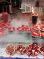这条回民街虽然商业化很浓,但味道还是值得一尝的。我们连续去了两天,停车位不是很好找,稍微远点停车走着去的也挺好,吃的圆滚滚可以散散步。羊肉泡馍一定要吃,38一碗汤的味道极好。酸菜炒米可以吃一个,酸酸的味道很好。红柳烤肉10元一串,同去的朋友至今念念不忘。柿子饼可以尝尝味道也不错。至于内个炸小土豆,土豆片,酸奶,肉夹馍(因为是回民都是牛肉馅,回头可以到市内再吃猪肉馅的)尝尝就好。石榴汁不要喝,假的太多不好喝。甘蔗汁跟椰汁我们都尝了。甘蔗汁超甜,不知是不是放糖了,但我很喜欢喝。好像是10元一碗的乌梅吧,不好吃,酸了吧唧的。还有一些吃的因为我们不感兴趣也没吃,所以也没办法给出更好的建议。希望能对要去