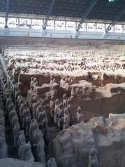 火车站拉人的大妈千万不要更她们去,有村民山寨了兵马俑,骗子太多了,一定要小心。值得一看,站在兵马俑一号坑前你就会被震撼,多壮观的场面,即使国家早已经灭亡,即使被埋在地底2000多年,气势依旧不减