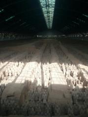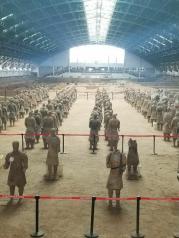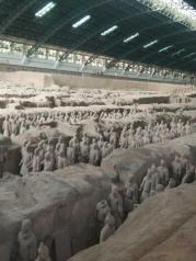 秦始皇兵马俑,是来西安必去地。被誉为世界第八大奇迹,世界文化遗产。在地下沉睡了数千年,被村民打井时无意间挖掘出。真的是人类的奇迹,非常震撼,叹为观止,是本人觉得非常值得去的地方。一共挖掘出三个坑。所有的兵马俑其实都是彩色俑,在挖掘的过程中色彩与空气接触迅速脱落,这也成为挖掘中遇到的一大难题,所以现在暂停了挖掘,只开发了一小部分。我们花了100元请了个导游,这钱花的很值,让我们更加详细的理解这里的历史文化。