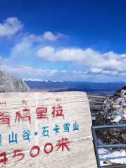 从蓝月山谷一直上来的话,就可以来到石卡雪山的山顶了,海拔是4500米,风光相当的不错,虽然是比较冷一点穿多几件衣服就完全没有问题,也不会有太大的高原反应。不过上雪山要看运气,我们去的时候上半段缆车都没有开放。
