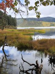 普达措国家公园目前关闭了两个核心景区,只开放属都湖。大门到景点有十多公里,要坐景区大巴进入。途中有个点可下来㱑行2.2公里,溪流边是古树,颇有一点点童趣。属都湖栈道3公里,途中见小松鼠。