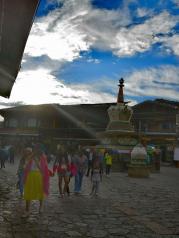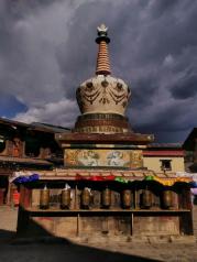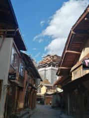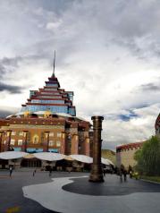 独克宗古城是香格里拉的老城区,现在开发成旅游区了,这里有很多的民居和客栈,中心区域是月光广场,广场上时常可看到一些藏族大妈喂鸽子,月光广场旁是龟山公园,登上去视野很开阔。可看到整个景区。
