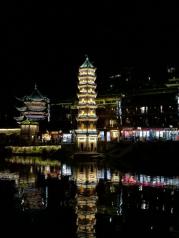 首晚入住凤凰中心区跳岩附近江畔,昨晚入住上游江畔,今晚将入住古城内部,体验凤凰不同的风情美。再赏凤凰夜景,因为就住在古城,当然躲不开夜景,尤其是因为团购的美食店都集中在虹桥附近,必须每天沿沱江来回走……万名塔――沱江上除了虹桥、跳岩之外,第3个标志性古建筑。